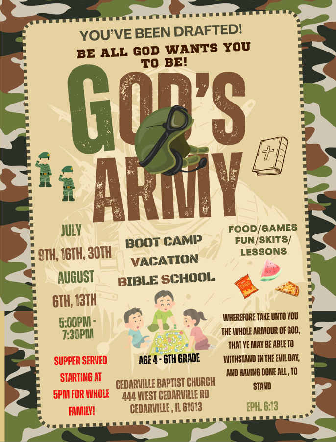 July 9th, 16th, and 30th / August 6th and 13th5pm meal provided each night for the whole family!